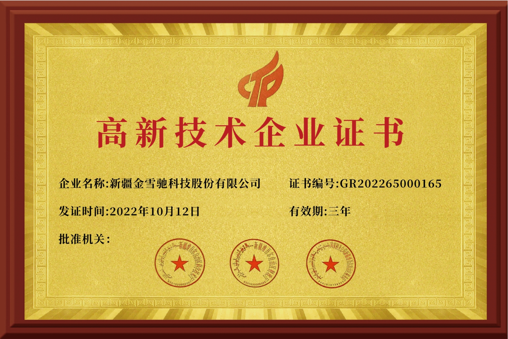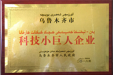 2019年新疆金雪馳科技股份有限公司獲得烏魯木齊市首批市級“科技小巨人”和“專精特新”企業榮譽稱號。