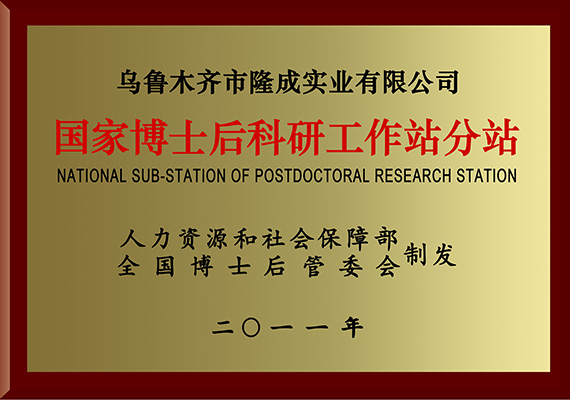 2014-2018年自治區優秀博士后科研工作站--烏魯木齊市隆成實業有限公司;