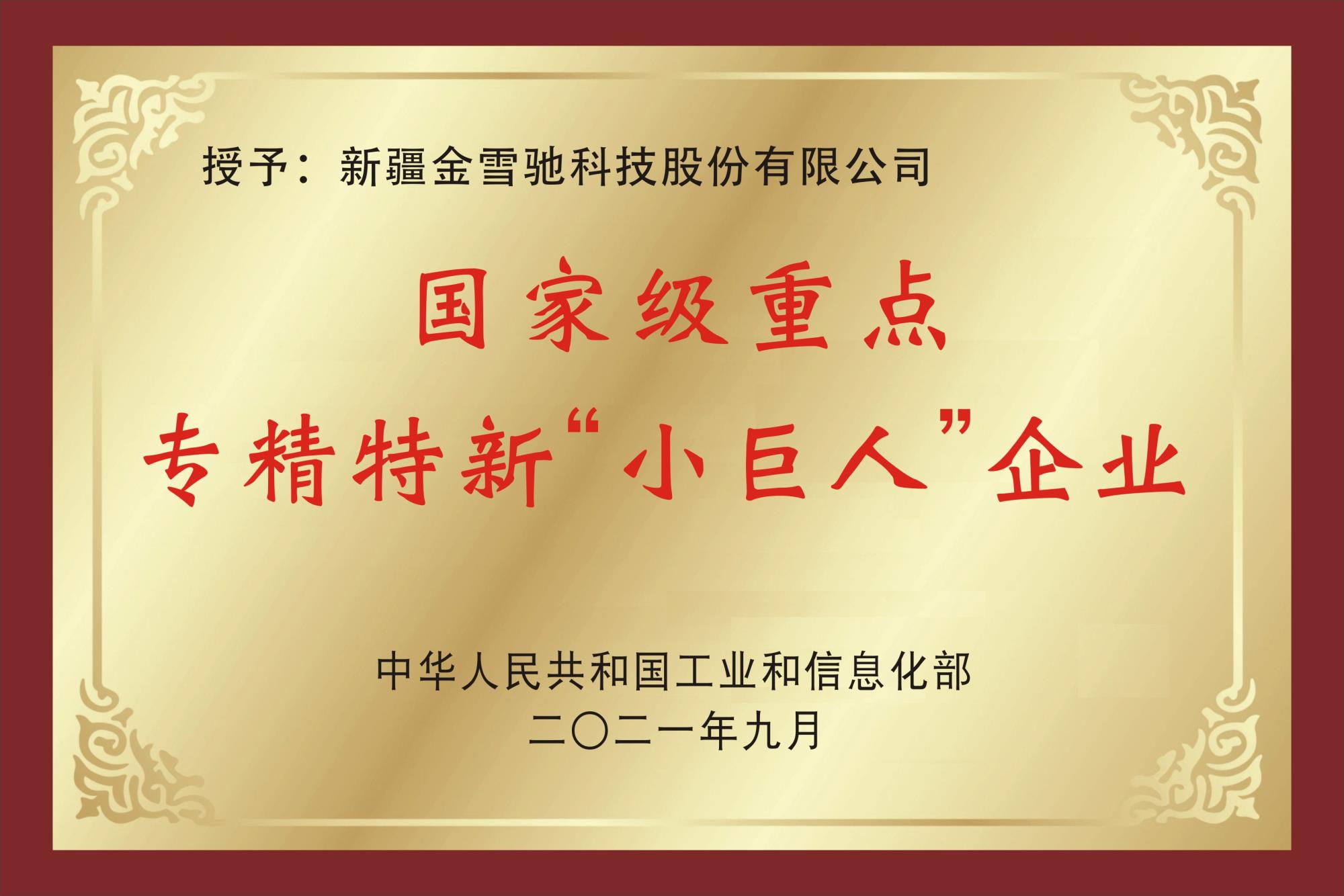 2022年新疆金雪馳科技股份有限公司榮獲*********專精特新“小巨人”企業;
