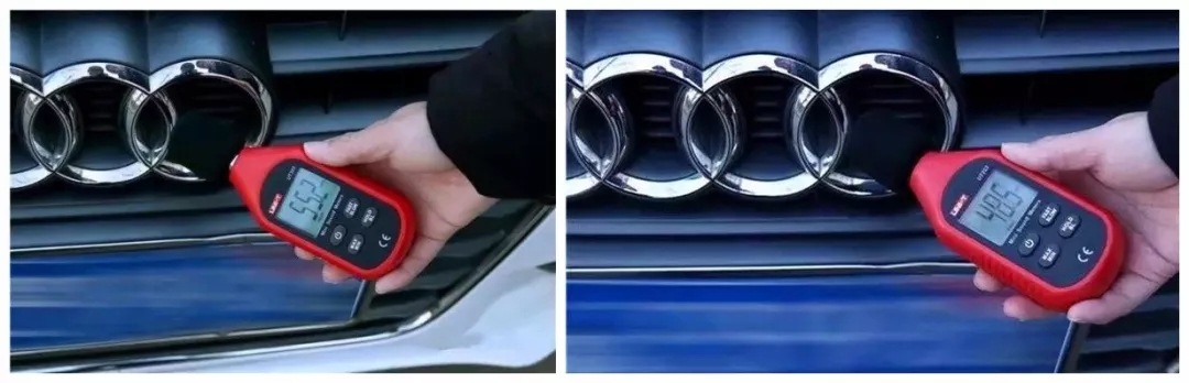 車外的噪音降低也很明顯,貼近前進氣格柵測試,更換前的噪音為55.2分貝(左圖),更換后為48.5分貝(右圖),降噪效果明顯。